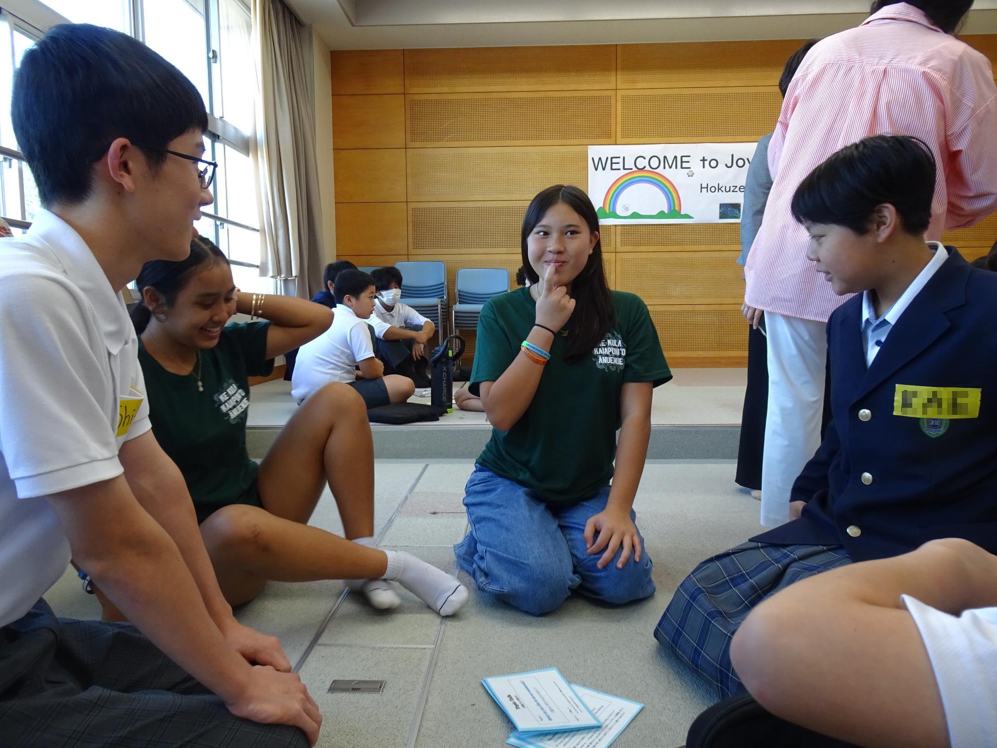 その後、訪問団はハワイと関わりのある上陽北ぜい学園へ移動し、同校の5年生、9年生と交流しました。生徒たちは英語での自己紹介や給食を一緒に食べるなど交流を楽しみました。