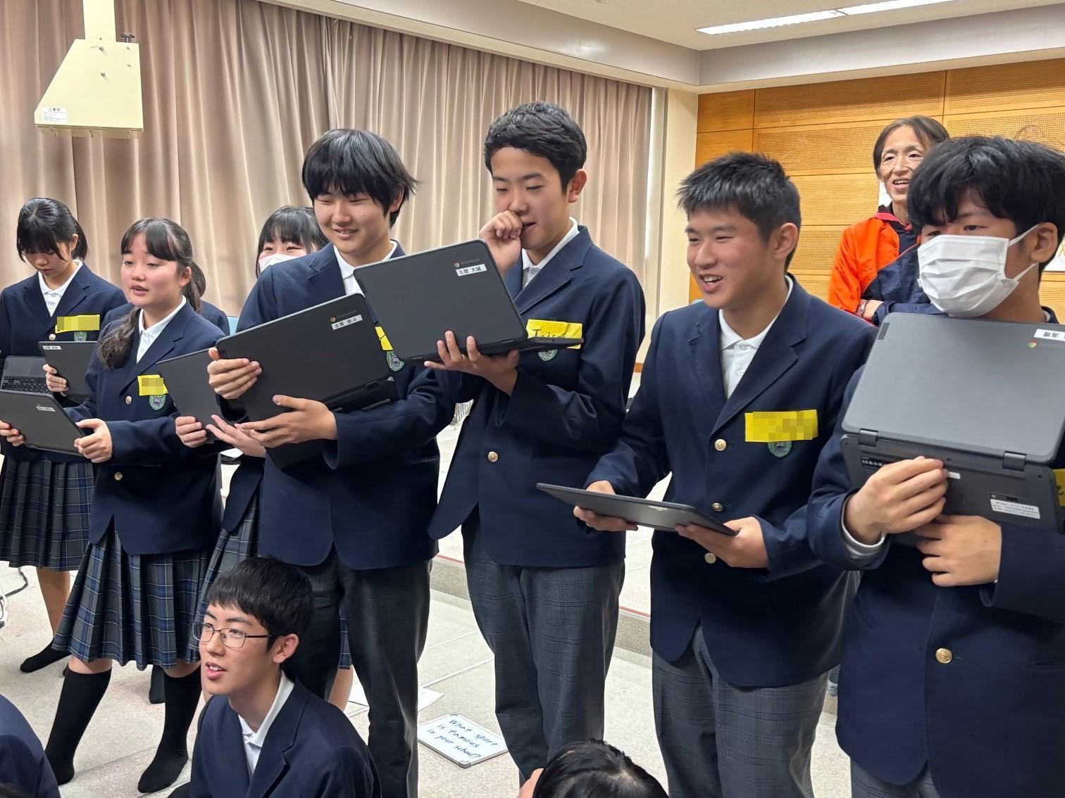 11月27日、上陽北ぜい学園の9年生16人と、姉妹校であるハワイ州ホノルル市のワシントンミドルスクールのJapanese Club(日本語クラブ)の生徒8人がオンラインで交流を行いました。