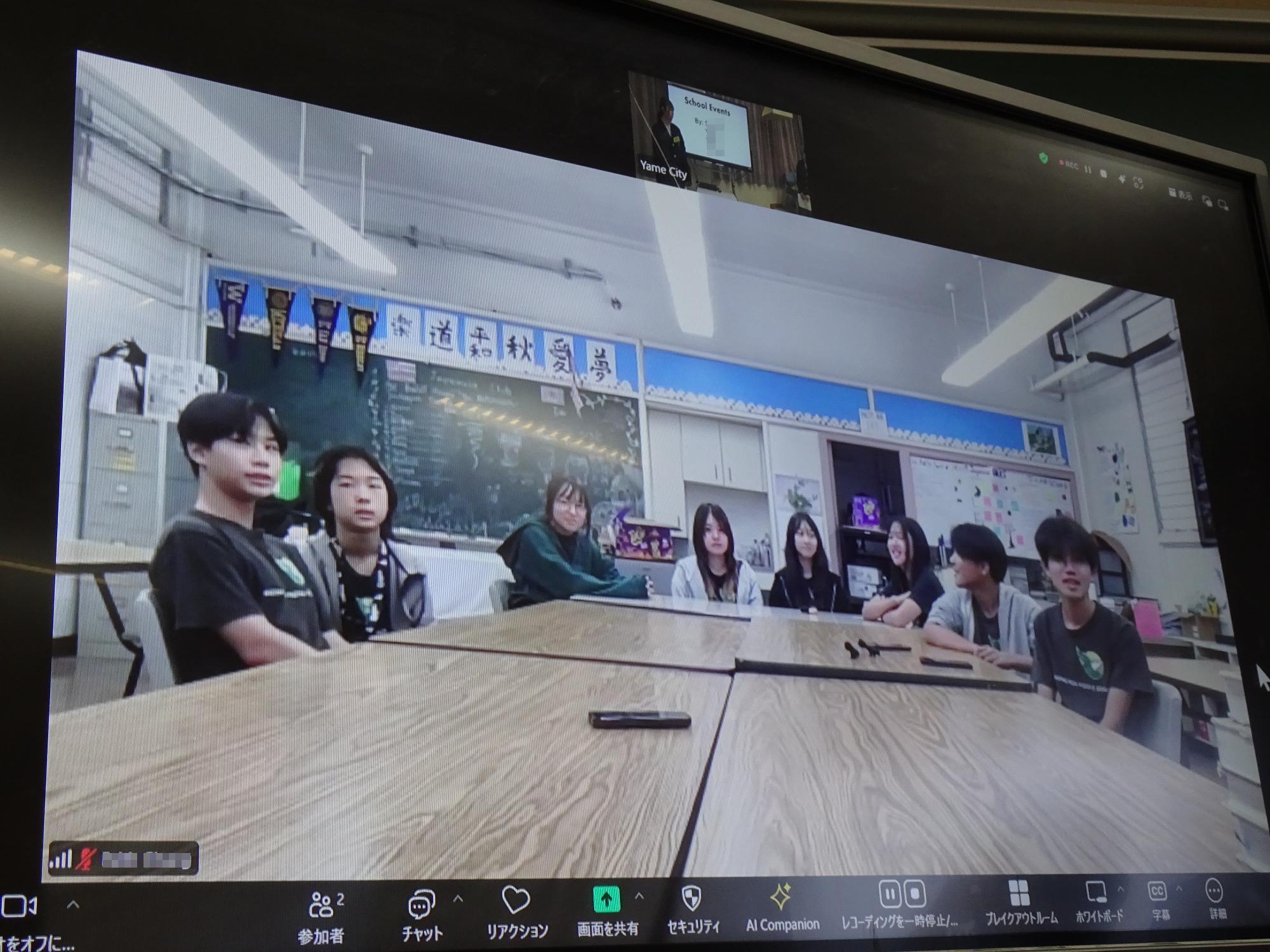 2025年8月に上陽北ぜい学園の生徒たちがハワイを訪問して以来、約3ヶ月ぶりの再会となりました。モニター越しに互いの顔を見つけると、「久しぶり!」と再会を喜び合う温かい雰囲気に包まれました。