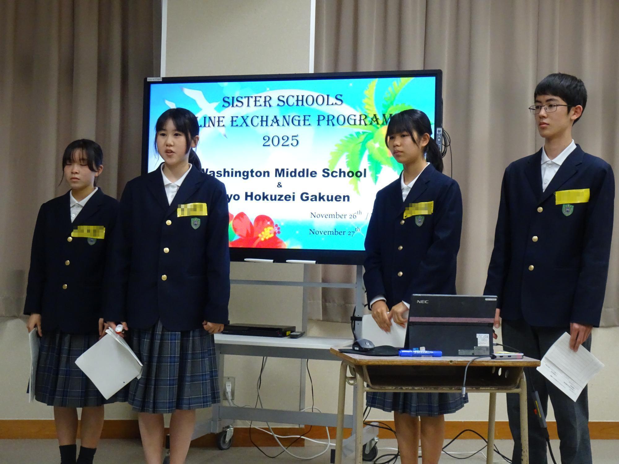 2025年11月27日上陽北ぜい学園とワシントンミドルスクール(ハワイ州)がオンライン交流