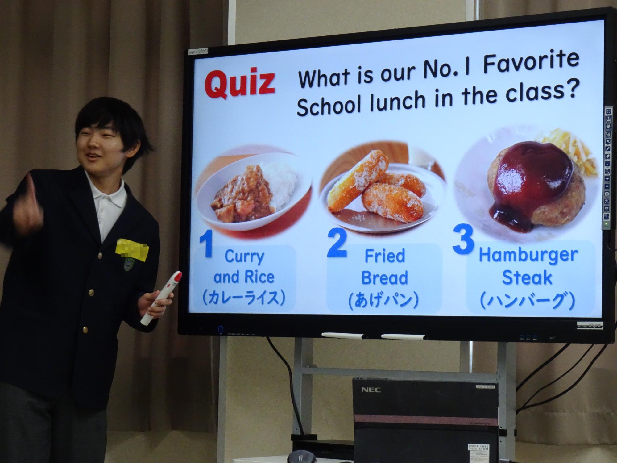 一方、ワシントンミドルスクールの生徒たちはハワイの名所などを動画で紹介し、カフート(アプリ)を使ってハワイに関するクイズを出題しました。上陽北ぜい学園の生徒たちは各自のパソコンでカフートにアクセスし、現地の文化や言葉に関する楽しい出題に大いに盛り上がり、クイズを通してハワイへの理解をさらに深めることができました。
