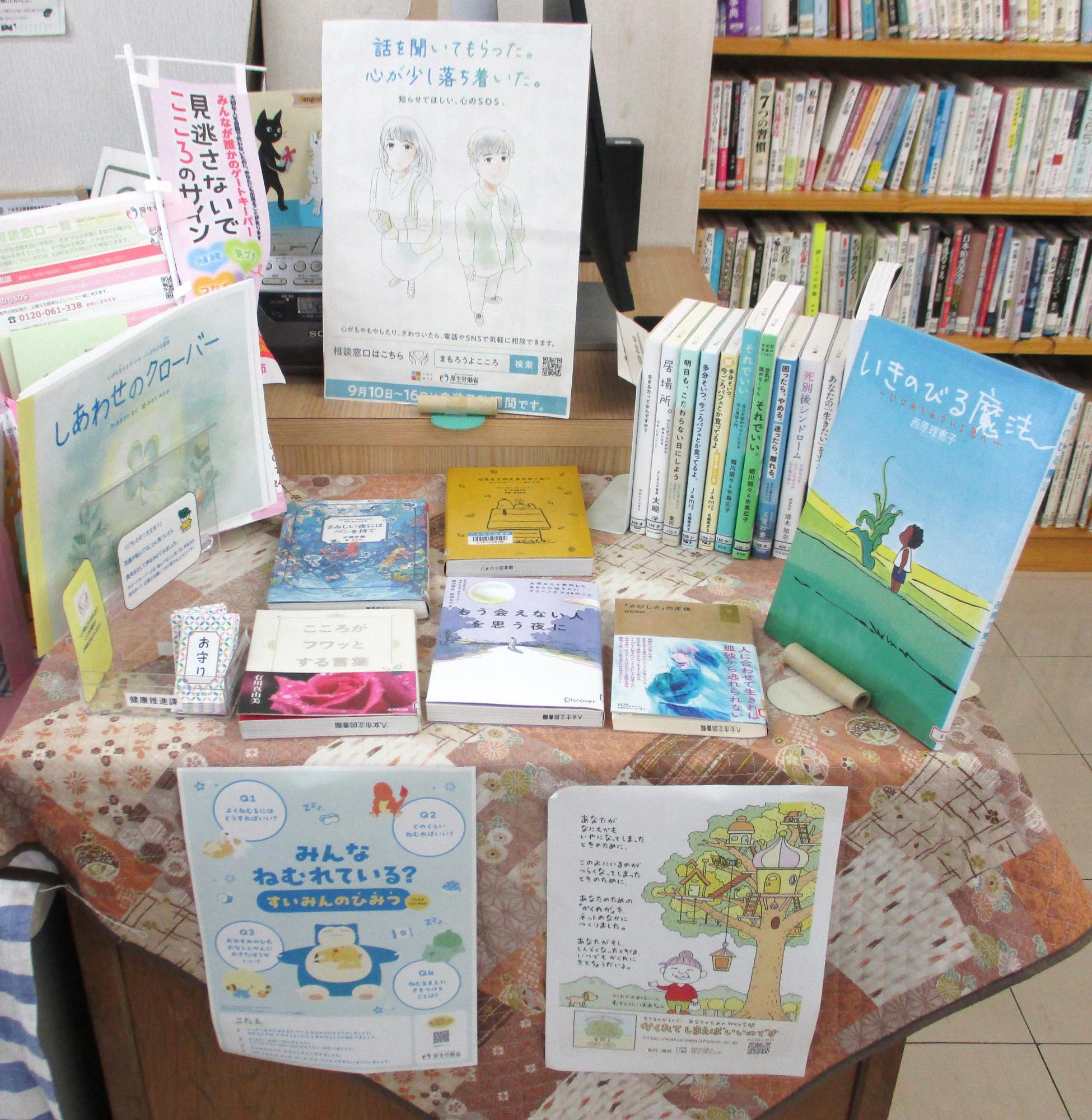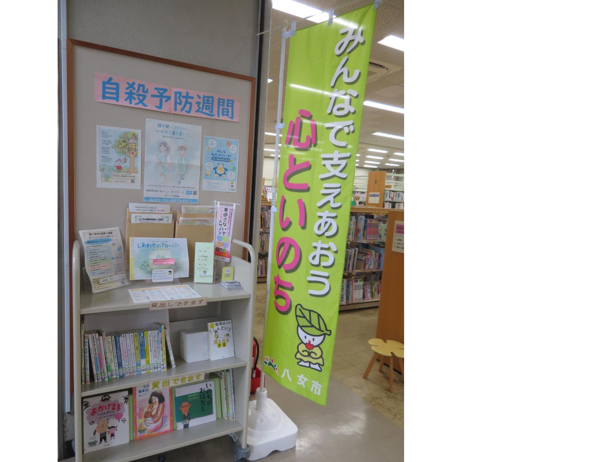八女市立図書館では自殺予防週間に合わせ9月の1か月間、こころの健康や自殺予防に関連した書籍を特設コーナーに設置しています。