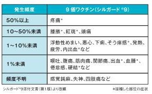 痛み等の頻度が高いワクチンであり、接種の痛みや緊張のために、血管迷走神経反射が出現し、失神することがあります。