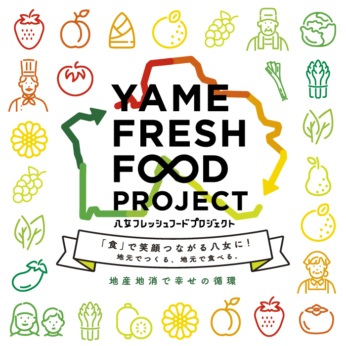 地産地消推進協議会では、「八女市産農産物・飲食物」【FOOD】が永続的に広がっていく想いを乗せ「YAME FRESH F∞D PROJECT」と名付け、「ジモトを食べよう!」をテーマに地産地消推進協力店を応援します。