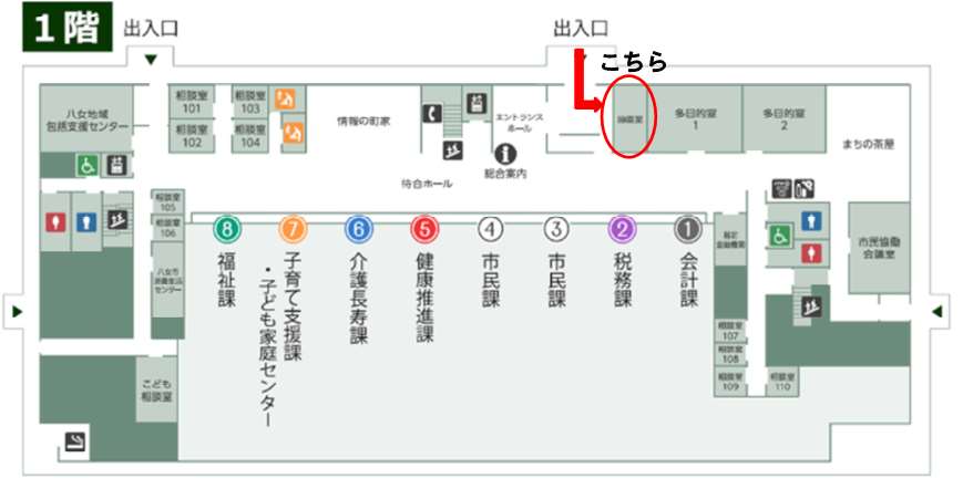 証明書の交付場所(八女市役所本庁)