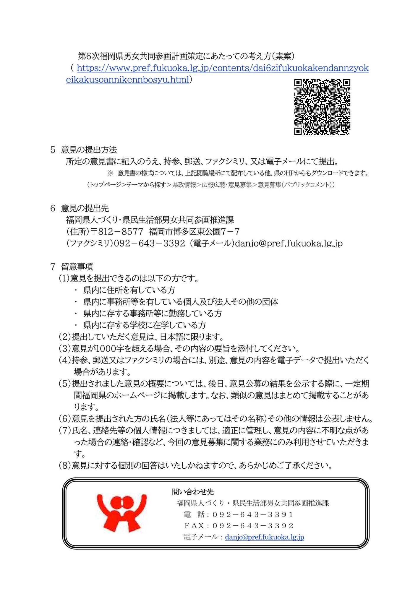 第6次福岡県男女共同参画計画策定にあたっての考え方(素案)に関する意見募集について